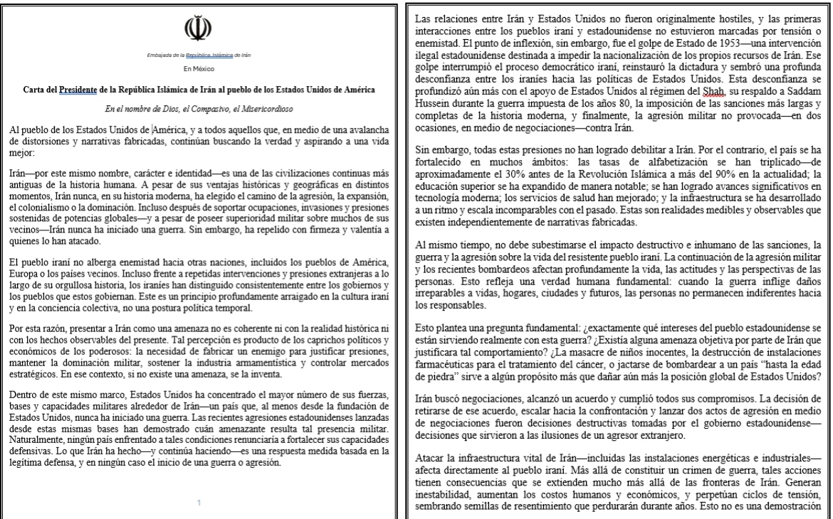 A continuación el texto íntegro traducido por la Embajada de Irán en México: