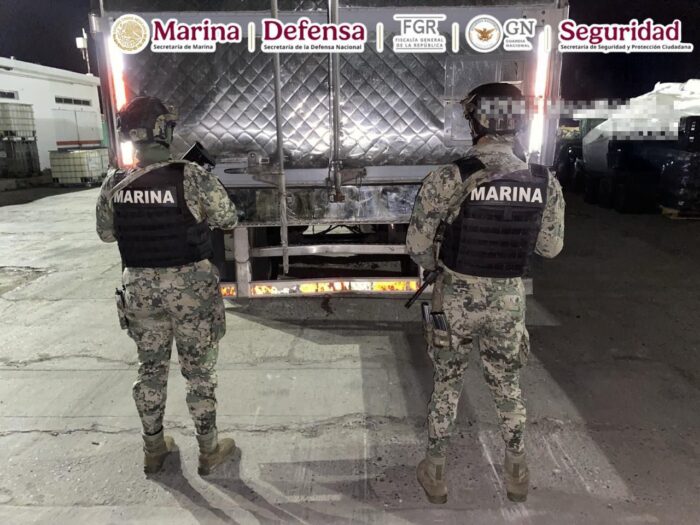 Marina descubren más de 600 kg de metanfetamina en doble fondo de tractocamión