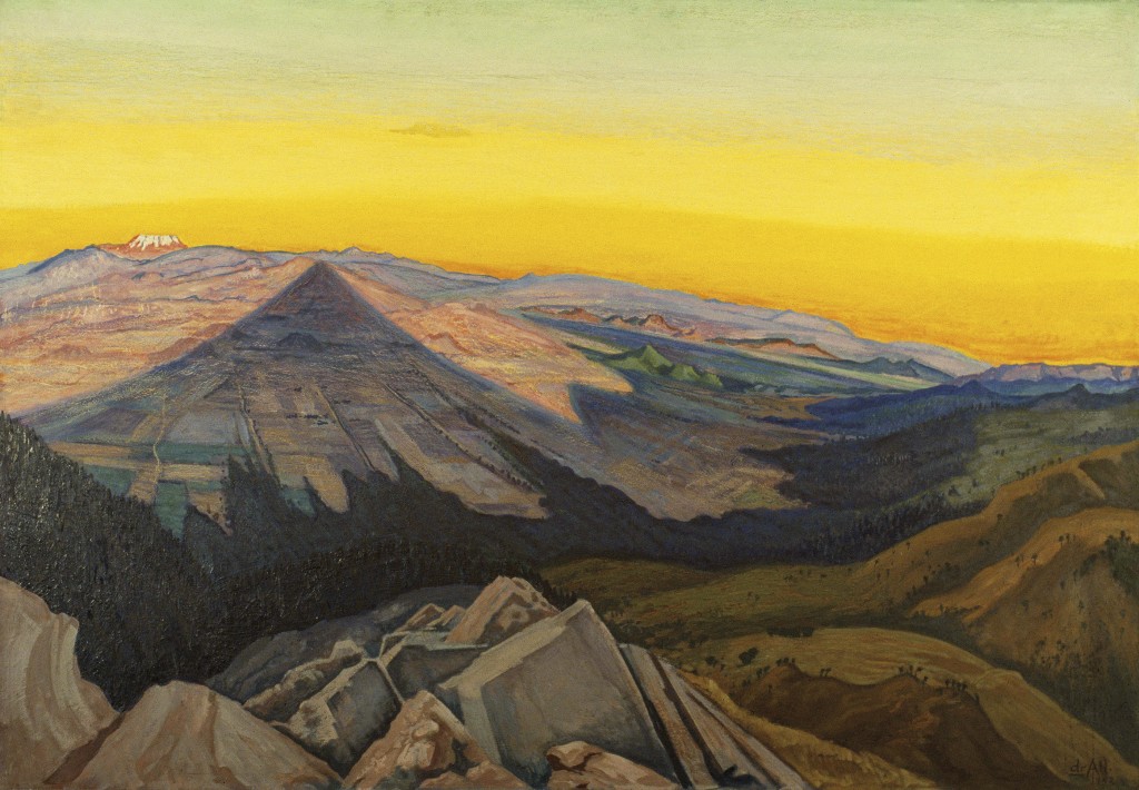 El segundo fenómeno se conoce actualmente como la “montaña fantasma”, ya que la sombra proyectada por el Sol detrás del Monte Tláloc se extiende hacia el occidente como una gran flecha. Una representación de este efecto, observada desde el Popocatépetl, fue plasmada por Gerardo Murillo, el Dr. Atl (1875–1964), en su pintura La sombra del Popo (1942).}
