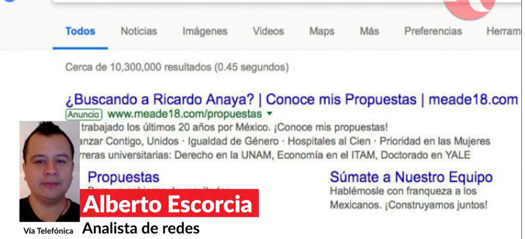 Cada vez que una persona busca a AMLO, Ricardo Anaya o Margarita Zavala en Google, aparece un anuncio para visitar el sitio del candidato priista José Antonio Meade. ¿Intrusión o manipulación?