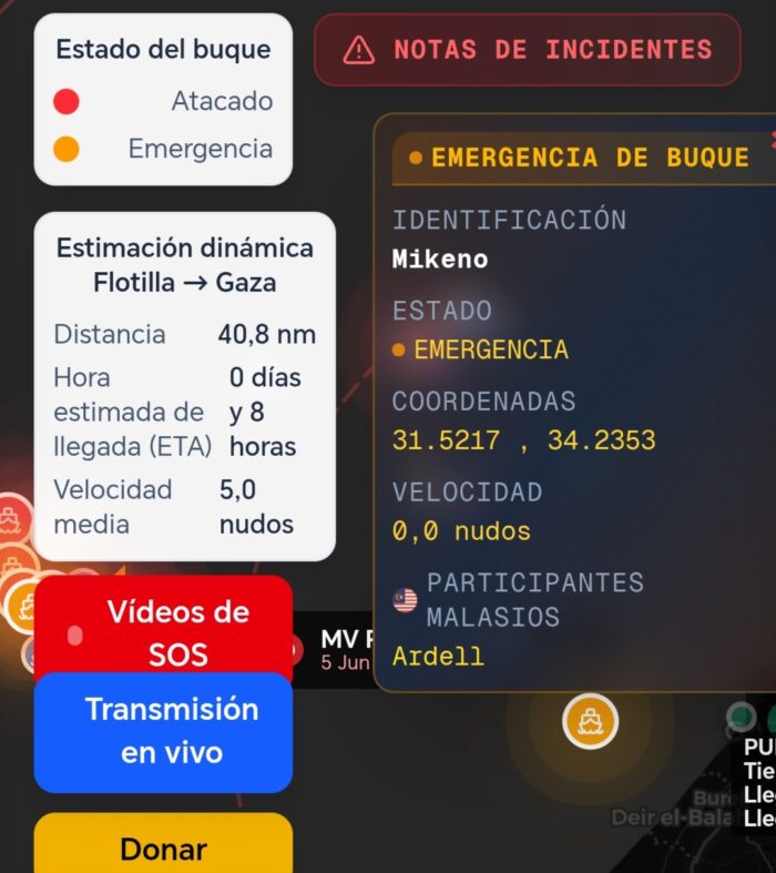 A pesar de las detenciones, algunas embarcaciones pequeñas han logrado continuar su recorrido y se ha restablecido la señal de seguimiento de ciertos barcos, confirmando que al menos dos naves con tripulantes mexicanos permanecen localizables y avanzan hacia Gaza.