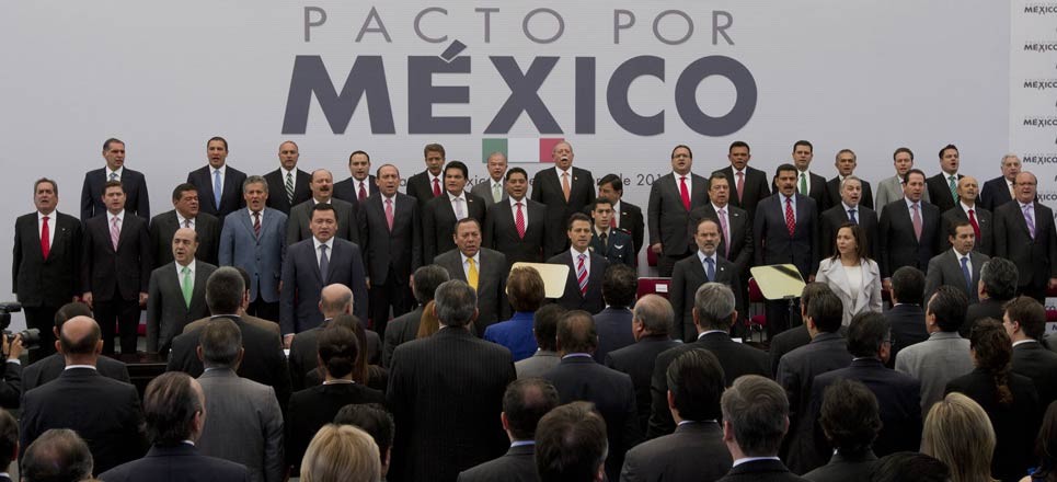 Los dirigentes nacionales del PAN, PRD y PRI firmaron este domingo con el gobierno de Enrique Peña Nieto el Pacto por México, con el que se comprometieron a impulsar una serie de reformas constitucionales que avalarían los representantes de estas fuerzas políticas en el Congreso.