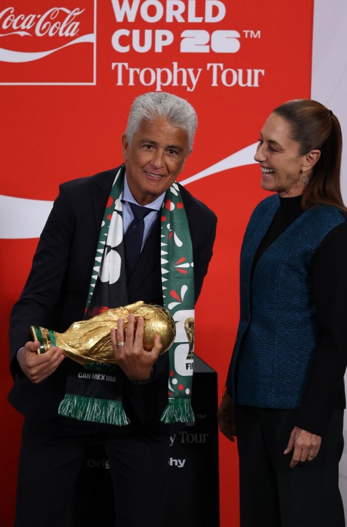 “Para los niños y niñas que ahorita están en la escuela, pero más tarde van a ver la mañanera por las redes sociales, pues les traemos la Copa”, dijo sonriente la mandataria al recibir el trofeo que coronará a la mejor selección del mundo el próximo 19 de julio.