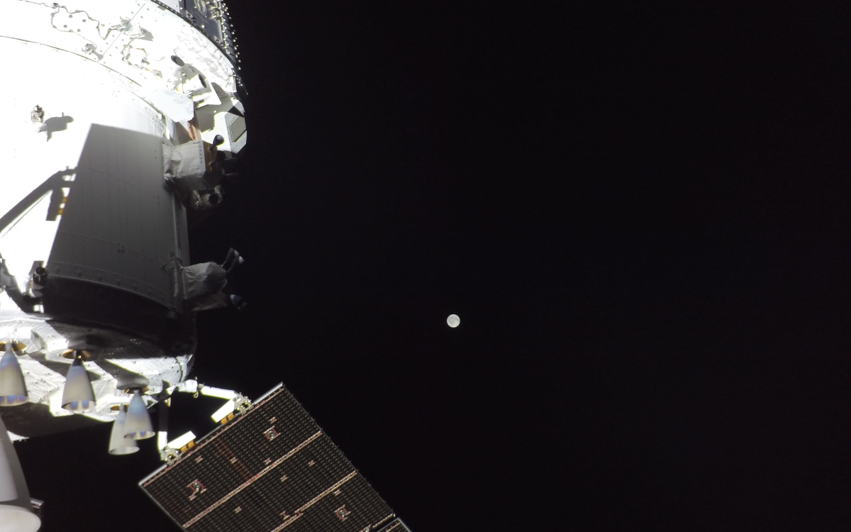 La Agencia Espacial Europea captó a la nave Orión a unos 183 mil 936 kilómetros de la Tierra y a unos 244 mil 298 kilómetros de la Luna cuando el reloj marcaba las 23:00 GMT del sábado.