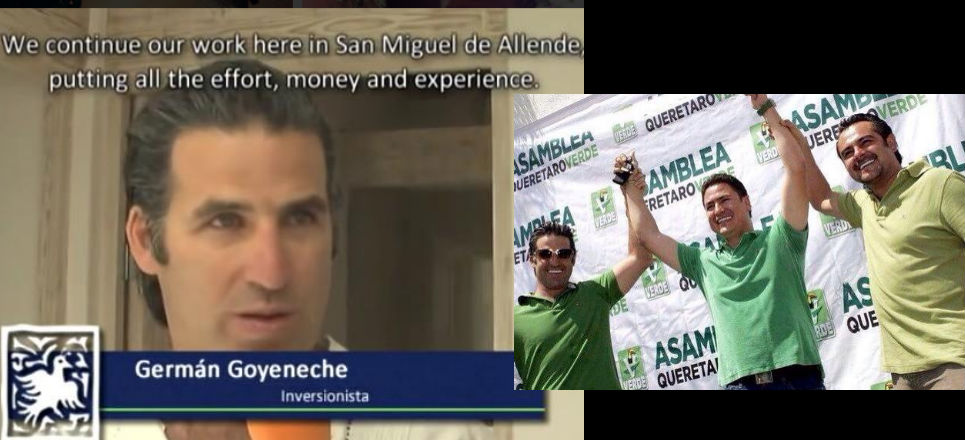 Además de ser militante del PVEM -aunque el partido ya anunció su expulsión-, Goyeneche también tenía relación con políticos panistas, como el diputado federal Ricardo Villarreal, quien busca ser alcalde de San Miguel de Allende. El lunes pasado el empresario participó en primera fila en una reunión con Villarreal: