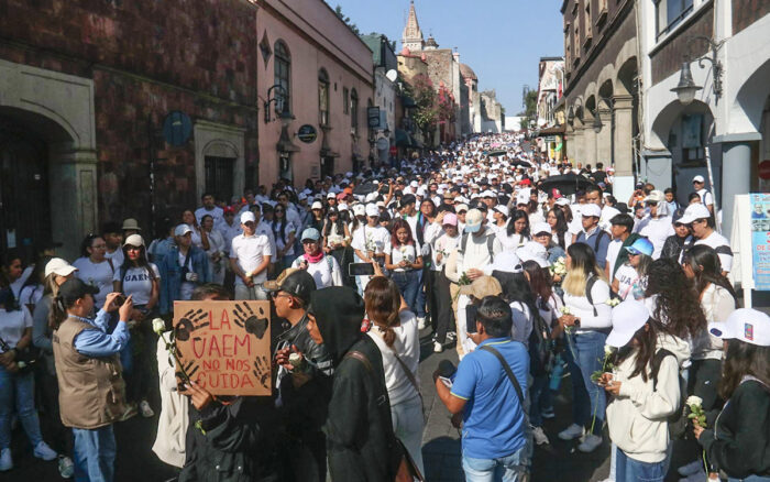 El martes, en Cuernavaca, se realizaron dos marchas en torno a la desaparición de Kimberly Joselin Ramos. La primera fue convocada por autoridades universitarias y contó principalmente con la participación de personal académico y administrativo, algunos de ellos con asistencia obligatoria. La segunda, organizada por estudiantes y personas solidarias, se dirigió hacia el centro de la ciudad para exigir justicia y la destitución de la rectora Viridiana León Hernández.