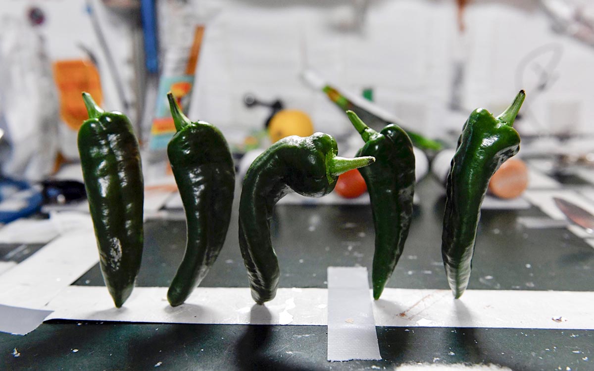 Los miembros de la tripulación a bordo de la Estación Espacial Internacional cultivaron chiles verdes y rojos como parte del estudio Plant Habitat-04, que busca comprender las interacciones planta-microbio en el espacio, así como evaluar el sabor, textura y nutrición de los alimentos cultivados en el espacio.
