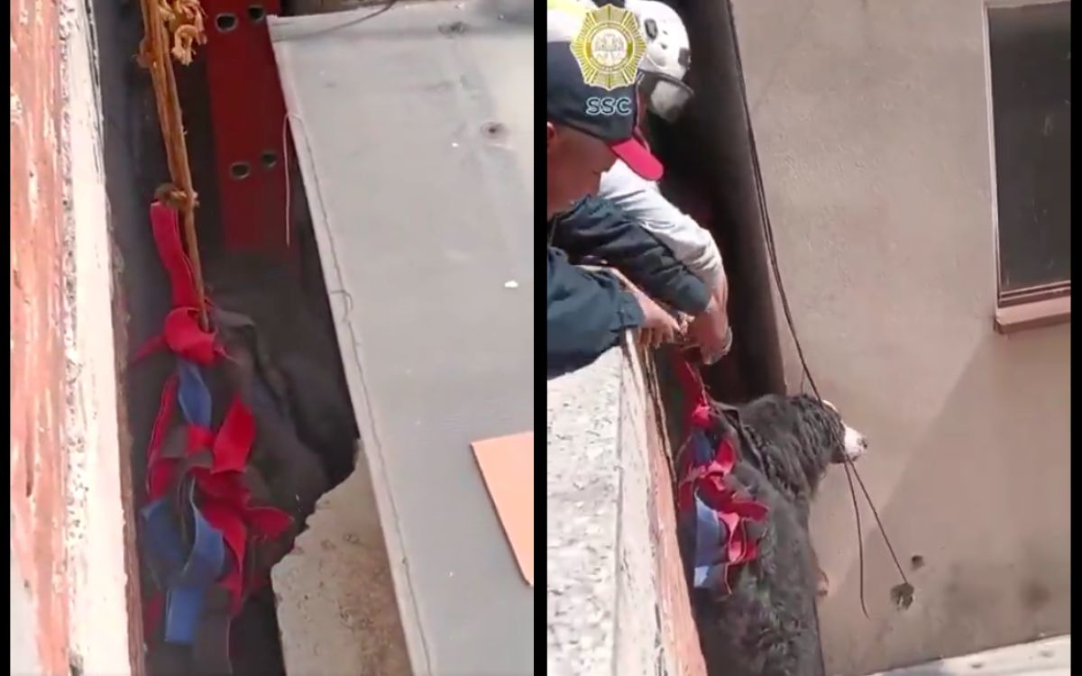 Elementos de la Secretaría de Seguridad Ciudadana (SSC) de la Ciudad de México rescataron a una perrita de raza grande que cayó y quedó atrapada entre dos edificios en la colonia Del Valle, en la alcaldía Benito Juárez.