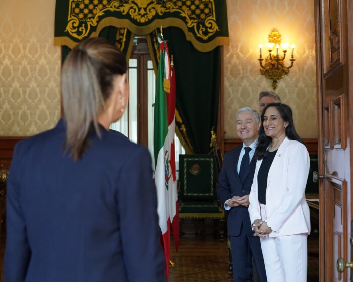 Llevada a cabo en Palacio Nacional, el diálogo incluyó además de a la mandataria a José Ramón de la Fuente, secretario de Relaciones Exteriores de México; el subsecretario de Comercio Exterior de la Secretaría de Economía, Luis Rosendo Gutiérrez Romano; y el subsecretario de Ingresos de la Secretaría de Hacienda, Carlos Gabriel Lerma Cotera.