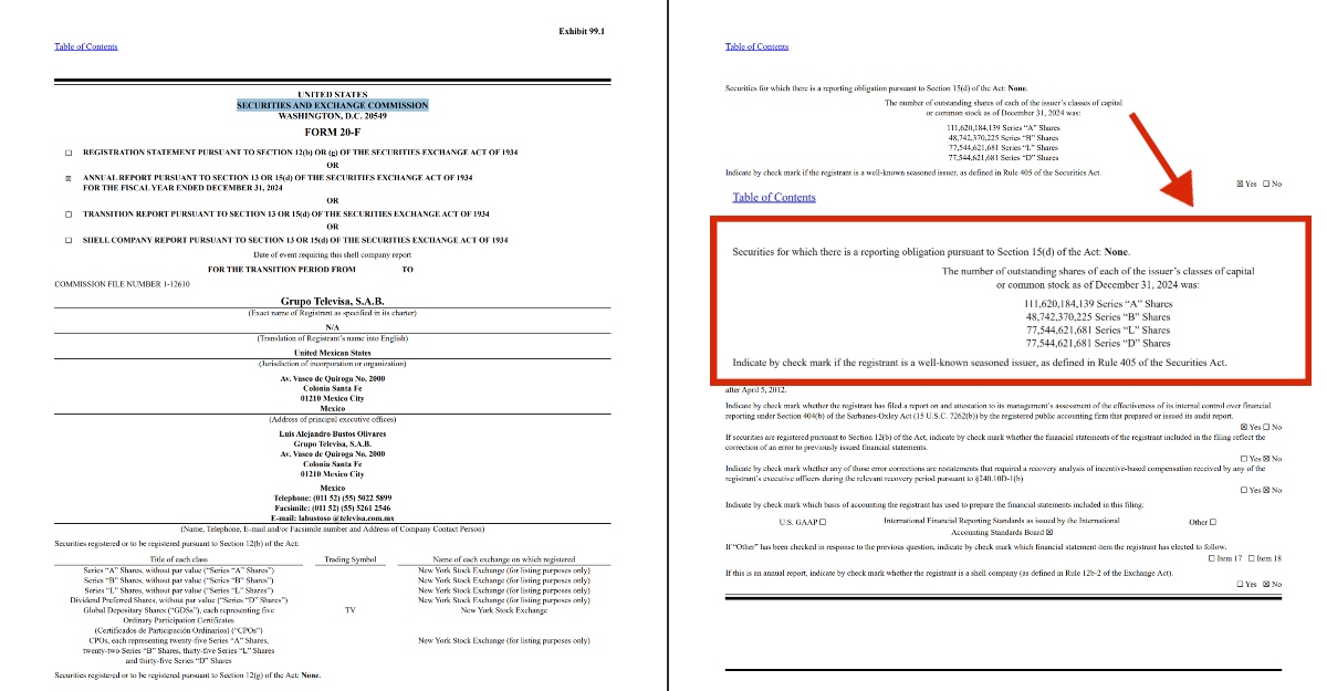 De acuerdo con el reporte del 2024 presentado por Grupo Televisa ante la Securities and Exchange Commission (SEC), de la serie A se han emitido alrededor de 111,620 millones de acciones, por lo que los títulos que Emilio Azcárraga vendió a Angoitia y Gómez representan cerca del 8% del total de dicha serie accionaria.