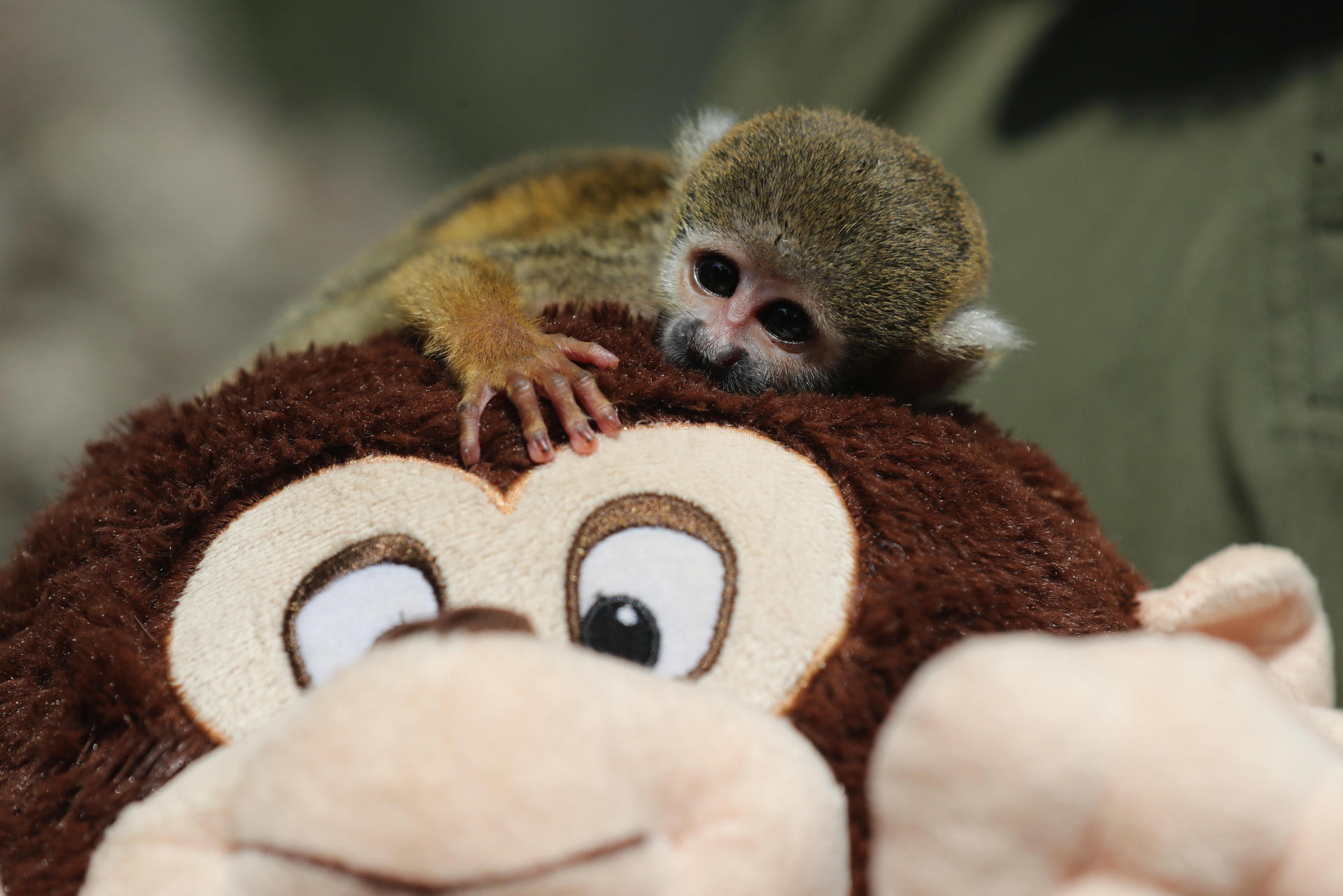 El pequeño mono fraile no se separa de su peluche, también en forma de primate, y aunque luce delgado, ya sobrepasa los 100 gramos gracias a los cuidados del centro de rehabilitación del Club Metropolitano Huáscar, del Servicio de Parques de Lima, ubicado en el distrito de Villa El Salvador.
