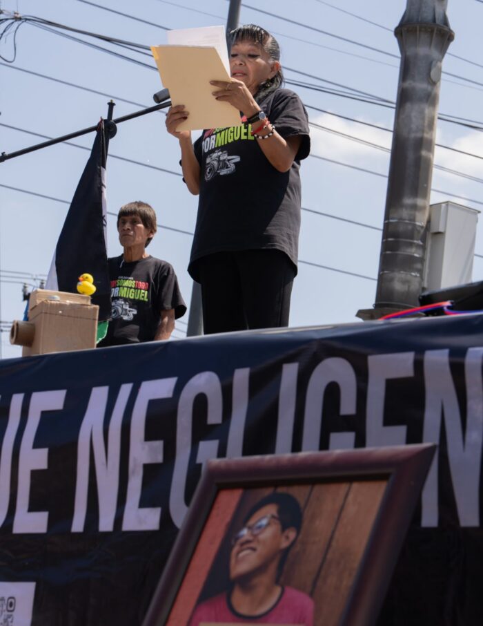 “A un año de su muerte no hay justicia. Nos han tratado bien, sí, pero la judicialización no ha llegado, eso duele y también indigna. Indigna ver cómo se atrasa el proceso, cómo se presentan recursos para retrasar la audiencia. Indigna saber que mientras nosotros seguimos con este dolor todos los días, hay empresas que siguen ganando dinero y que siguen actuando como si no tuvieran responsabilidad”, dijo Graciela Hernández, mamá de Miguel, durante el evento.
