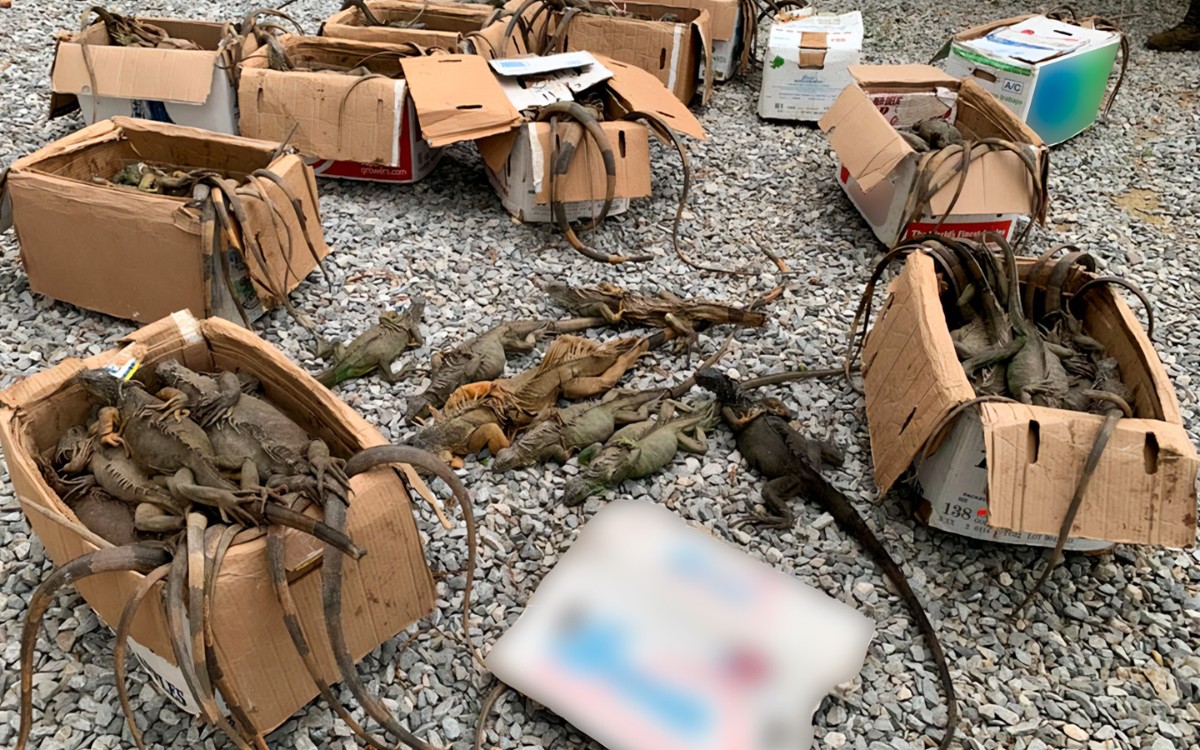 De acuerdo con la Procuraduría Federal de Protección al Ambiente (Profepa), el 4 de abril personal de seguridad localizó a 192 iguanas verdes dentro de 15 cajas de cartón en la cajuela de un autobús de la línea “Sur”, en el municipio de Matías Romero Avendaño. La unidad provenía de Coatzacoalcos, Veracruz, con destino a Salina Cruz, Oaxaca.