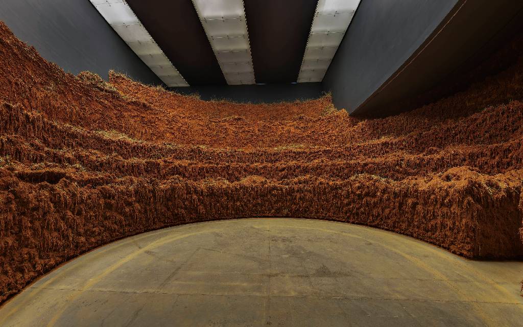 Con la curaduría de Alejandra Labastida y Daniel Montero, la monumental pieza da forma a una estructura circular de terrazas que se eleva hasta el techo, cuya altura varía entre los 6 y los 12 metros. Es cuestión de ingresar en ella para sentirse parte de un todo del que el ser humano es apenas una pequeña parte. “Aquí no hay una separación entre el paisaje y nosotros”, advierte en entrevista quien es considerada una de las artistas contemporáneas más importantes de su país.