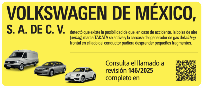 – Las personas consumidoras verán los detalles del llamado a revisión en el sitio oficial de VOLKSWAGEN en la liga directa https://www.appsvolkswagen.com.mx/recall/llamado-revision.html
