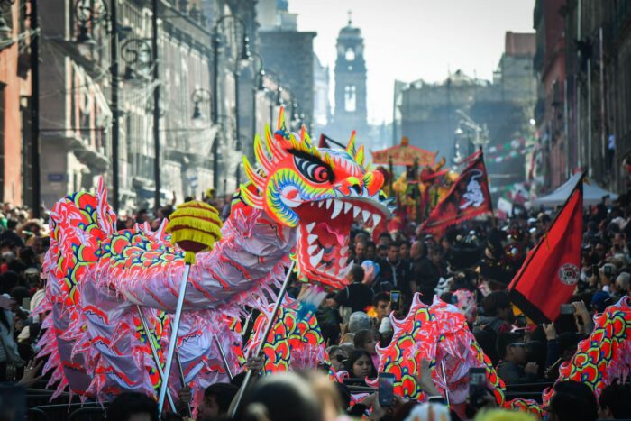 La comunidad china desfiló con dragones y leones imperiales en los corredores del Centro Histórico de la Ciudad de México para dar la bienvenida al Año Nuevo chino, un ciclo que iniciará oficialmente el 17 de febrero y estará marcado por el Caballo, uno de los 12 animales del zodiaco de esta cultura asiática.