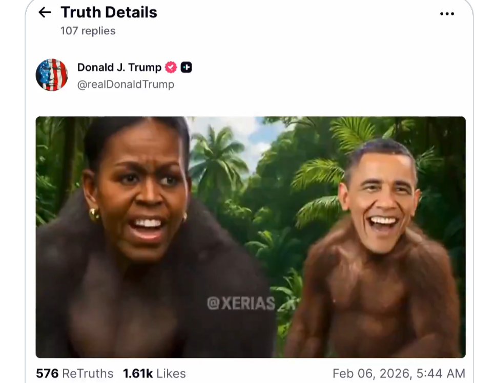 El presidente de EE.UU., Donald Trump, afirmó no pedirá disculpas por la publicación de un video en su cuenta oficial de Truth Social donde el expresidente Barack Obama (2009-2017), y la ex primera dama Michelle, fueron retratados como simios y el video fue posteriormente retirado de la plataforma tras recibir duras críticas por el contenido racista.
