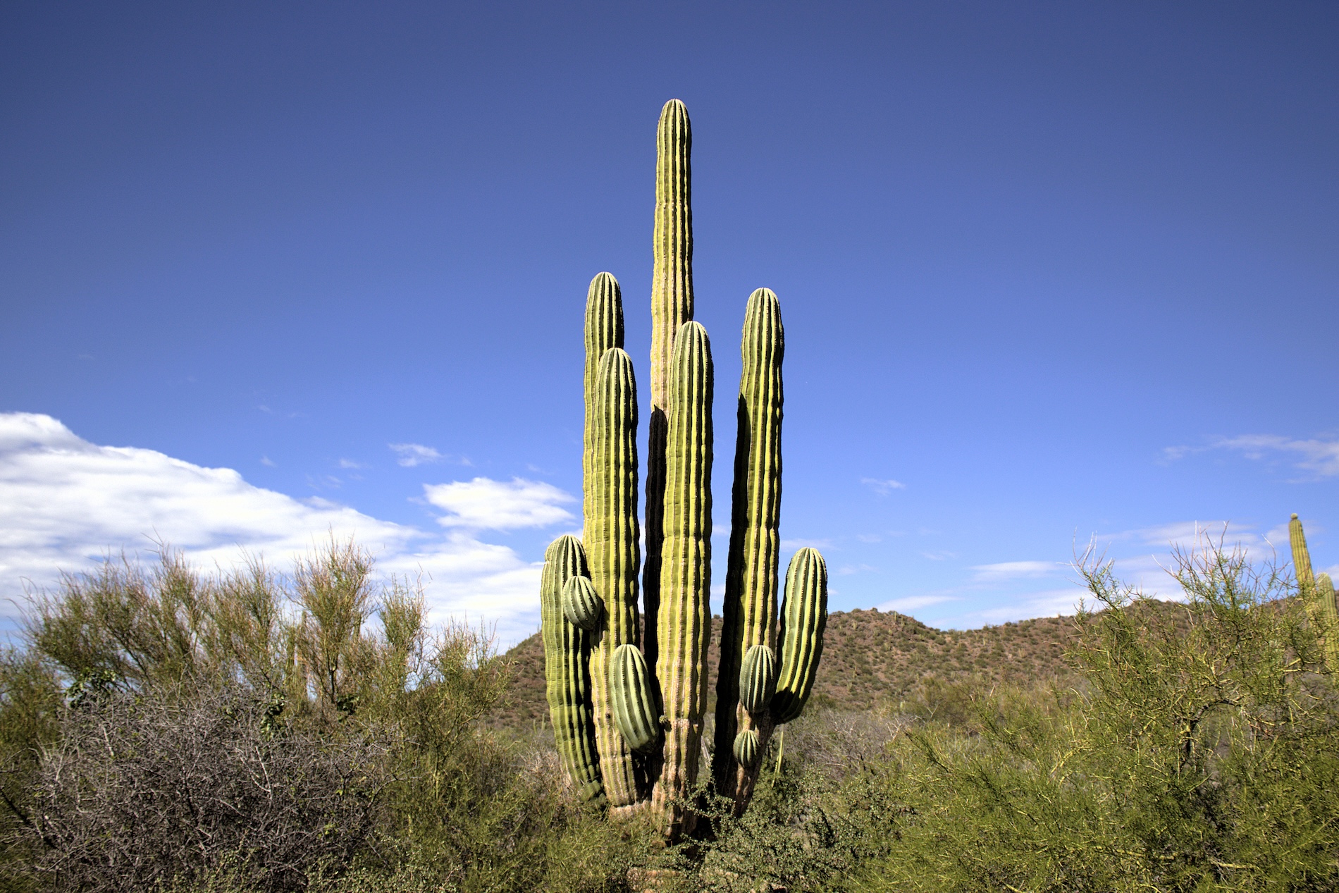 La pitaya agria (Stenocereus gummosus) es un cactus columnar con frutos y se encuentra en la Isla Tiburón. Foto: Astrid Arellano para Mongabay Latam.