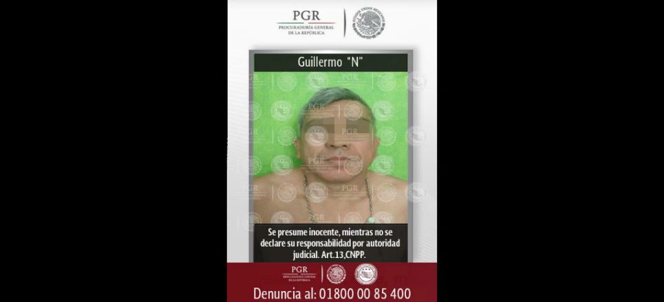 La Procuraduría General de la República (PGR), a través de elementos de la Agencia de Investigación Criminal (AIC) y de la Subprocuraduría Especializada en Investigación de Delincuencia Organizada (SEIDO), en coordinación con el Centro de Investigación y Seguridad Nacional (CISEN), lograron la captura, en el municipio de Amacuzac, Morelos, de Guillermo ”N”, quien es señalado como probable responsable de las operaciones financieras y coordinación logística de un grupo delincuencial con presencia en la entidad donde fue asegurado.