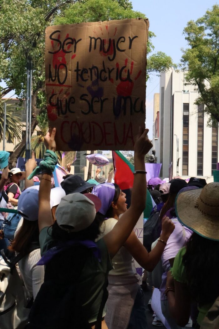 Las consignas apuntan a una realidad persistente: en México unas diez mujeres son asesinadas cada día, una tendencia constante en la última década. “Somos el corazón de las que ya no laten”, se lee en una de ellas.