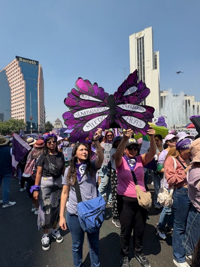 Entre la multitud, adolescentes que marchan por primera vez se mezclan con mujeres que llevan años participando en el 8M, en una movilización que ocurre por segundo año con Claudia Sheinbaum como presidenta de México.