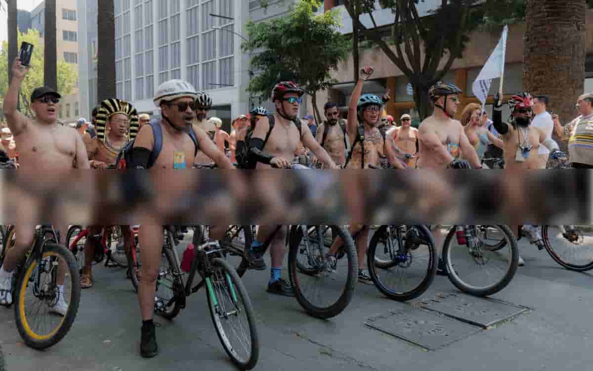 Desnudas, cientos de personas tomaron sus bicicletas y rodaron este sábado por las principales calles de la Ciudad de México para promover este transporte e impulsar la conciencia y respeto hacia los ciclistas.