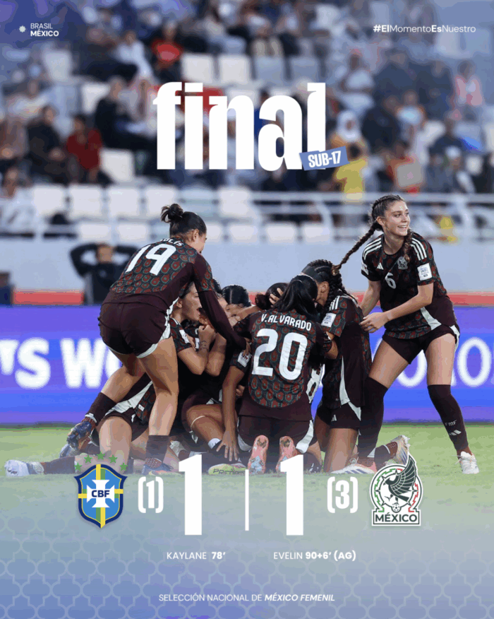 En la tanda decisiva, México mostró mayor efectividad al convertir tres de sus cobros, mientras que Brasil solo pudo anotar uno. Con este resultado, el conjunto tricolor cerró su participación en el torneo con una medalla de bronce.