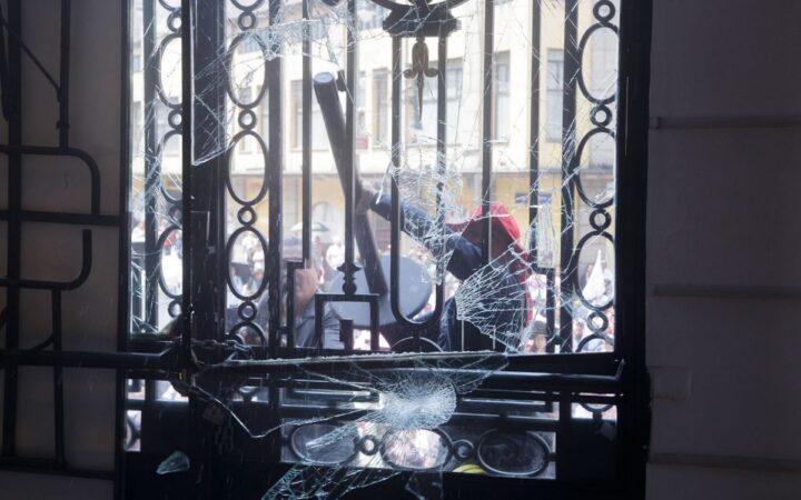 Según los primeros reportes, los inconformes rompieron vidrios en puertas del recinto legislativo durante el intento de ingreso, lo que generó momentos de tensión y obligó a la suspensión de actividades, así como al resguardo de diputados y personal.