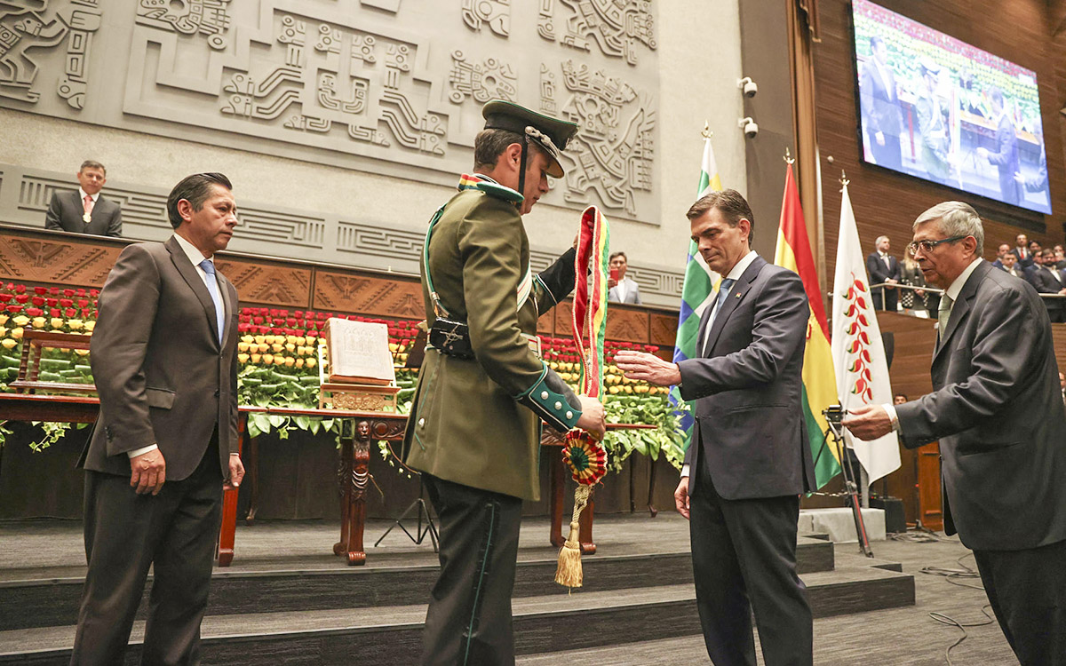 El político fue elegido presidente en la inédita segunda vuelta realizada el pasado 19 de octubre, con un 54.96 % de los votos, frente a un 45.04 % logrado por su rival, el exmandatario conservador Jorge Tuto Quiroga (2001-2002).