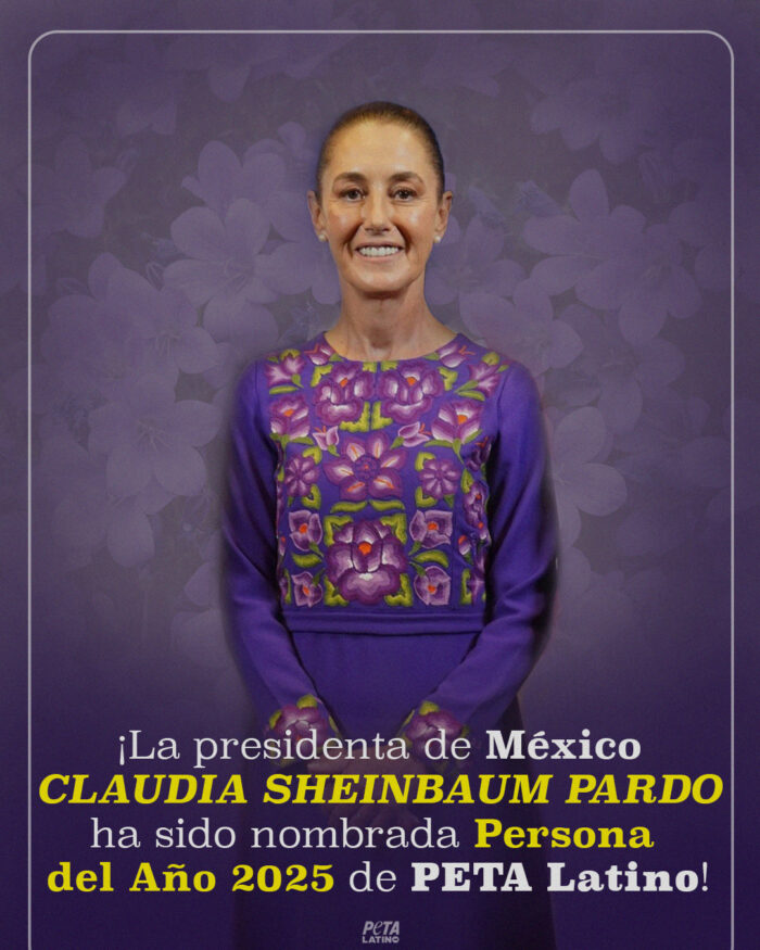 “PETA Latino está encantada de nombrar a Sheinbaum como Persona del Año por su visión, empatía y compromiso inquebrantable para crear un mundo más compasivo para todos. Su ejemplo es un inspirador recordatorio de que todos tenemos el poder de marcar la diferencia: alza la voz contra las corridas de toros y los parques de indiversiones como SeaWorld, hazte vegano y defiende la liberación animal en nuestras comunidades”.