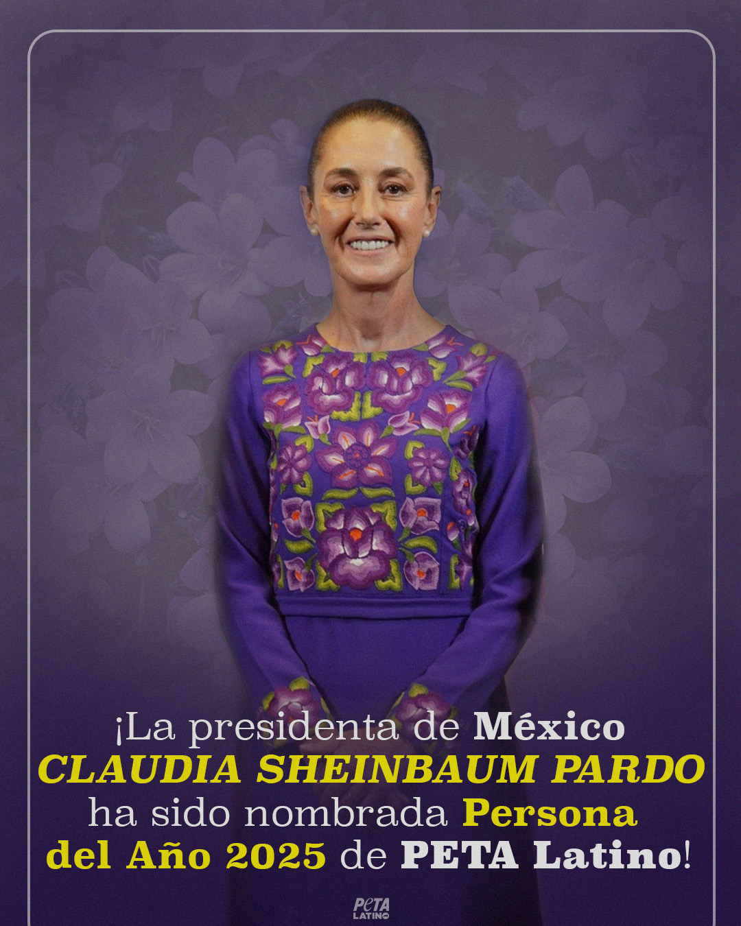 “PETA Latino está encantada de nombrar a Sheinbaum como Persona del Año por su visión, empatía y compromiso inquebrantable para crear un mundo más compasivo para todos. Su ejemplo es un inspirador recordatorio de que todos tenemos el poder de marcar la diferencia: alza la voz contra las corridas de toros y los parques de indiversiones como SeaWorld, hazte vegano y defiende la liberación animal en nuestras comunidades”.