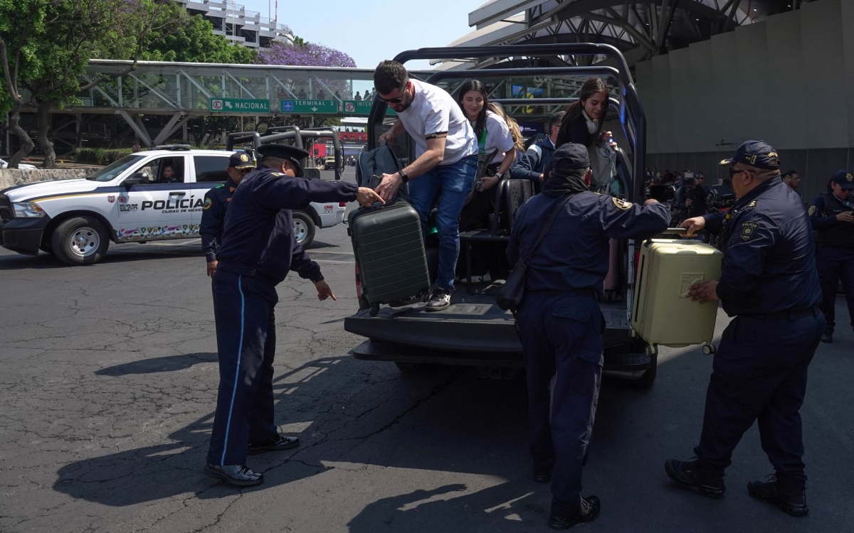 La Secretaría de Seguridad Ciudadana de la capital puso a disposición camionetas policiales para facilitar la llegada de los pasajeros a las terminales 1 y 2 del AICM, a la altura de la avenida Capitán Carlos León.