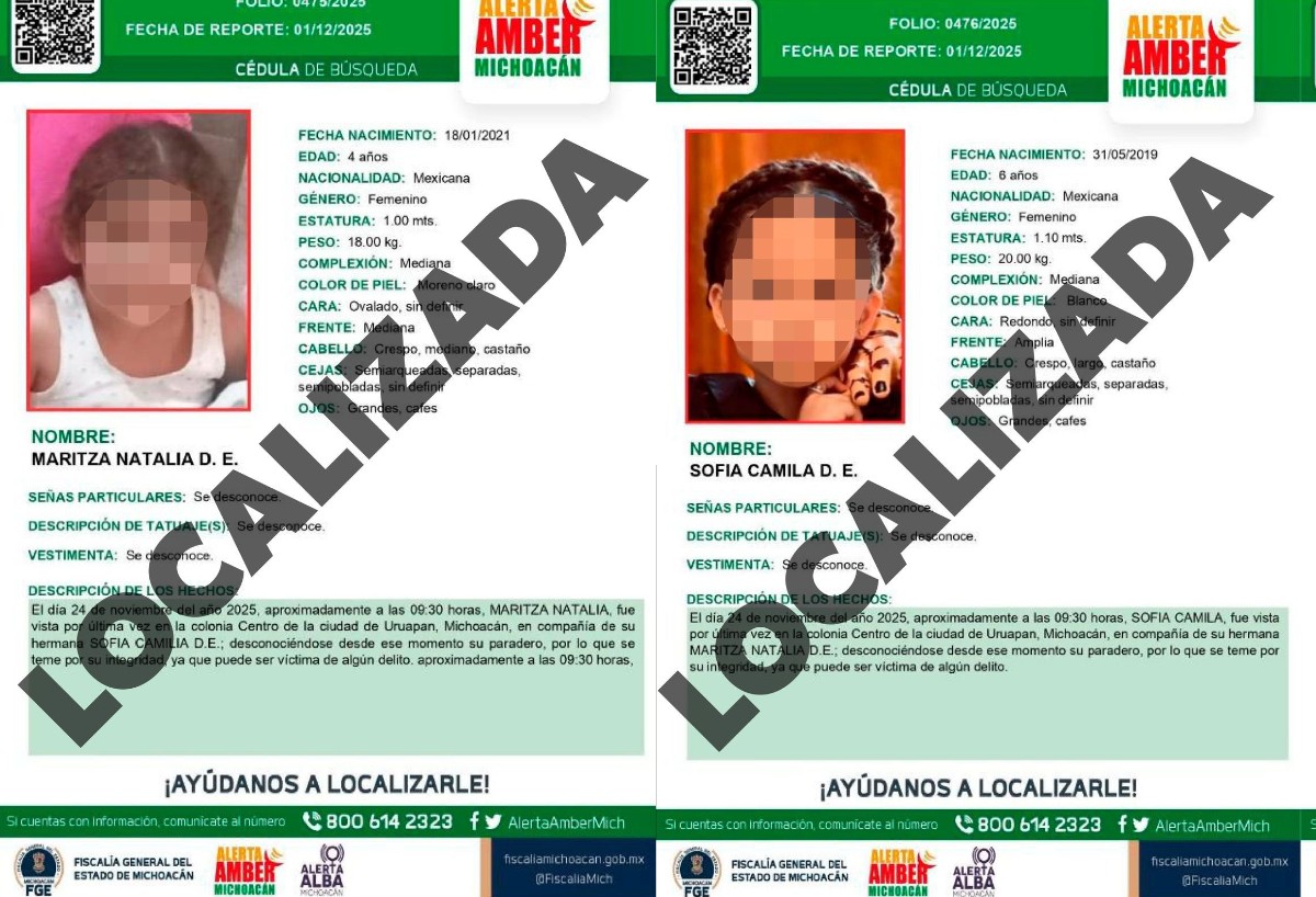 Durante la operación, fueron localizadas sanas y a salvo ambas niñas.