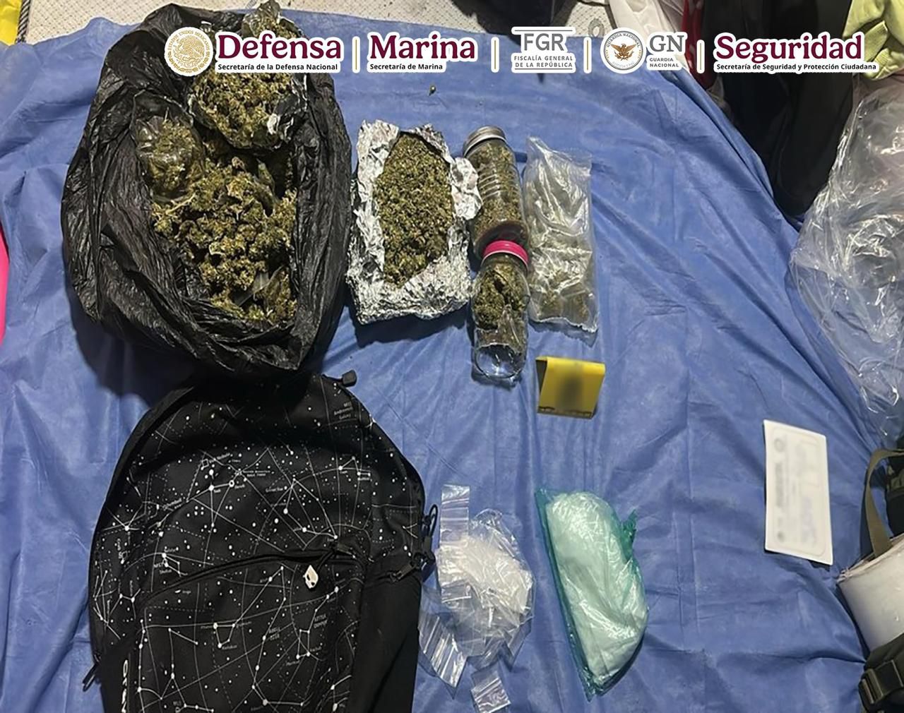 En los inmuebles se aseguraron dosis de metanfetamina y marihuana, teléfonos celulares, un arma de fuego corta, dinero en efectivo, equipos de cómputo y una libreta con una relación de nombres.