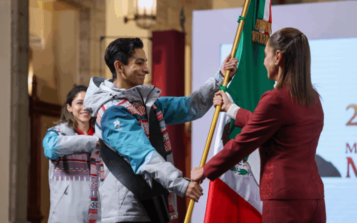 Por primera vez en la historia el equipo mexicano que participará en los Juegos Olímpicos de Invierno, en esta ocasión a celebrarse en Milano-Cortina d’Ampezzo 2026, del 6 al 22 de febrero, fue abanderado en Palacio Nacional.