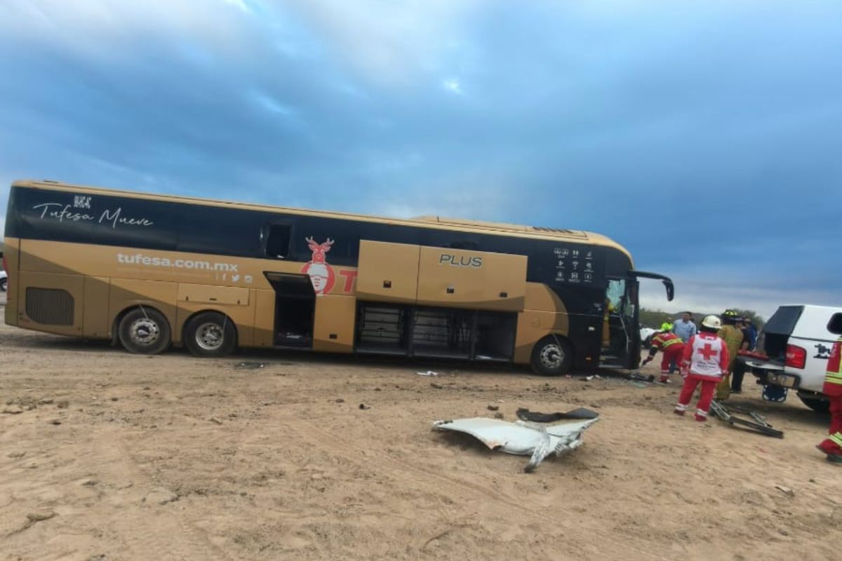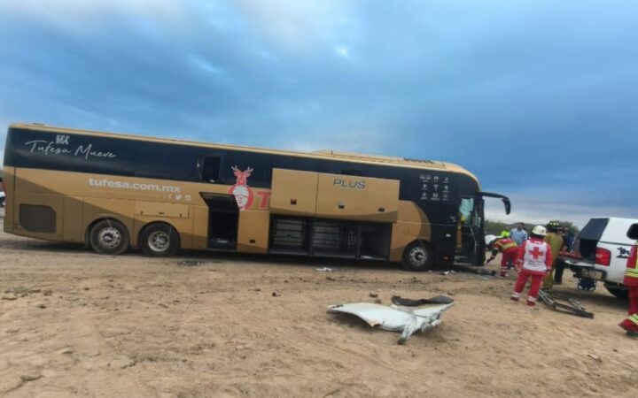 Cinco personas fallecieron y 25 resultaron heridas tras un accidente de tráfico entre un autobús y un tractocamión en la localidad de Caborca, Sonora, informó este viernes el organismo de Protección Civil estatal a través de sus redes sociales.