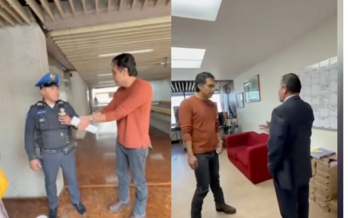 En el video de 10 minutos publicado en su cuenta oficial de Facebook, se aprecia Arriaga encarar a los policías y a un funcionario de traje. A los elementos de seguridad, Marx los confronta con señas para que lo esposen.