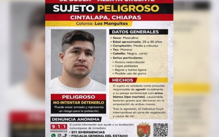 El agresor escapó del lugar y continúa prófugo, mientras autoridades estatales mantienen un operativo de búsqueda mediante una alerta urgente donde fue catalogado como “sujeto peligroso”.