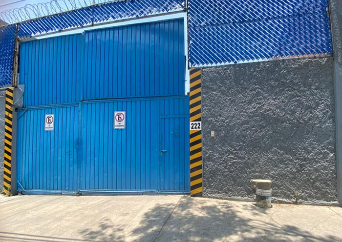 La fachada tiene puertas metálicas azules y una rendija por la que apenas se asoman los ojos del guardia, quien dice no conocer a Comercializadora Familyduck.