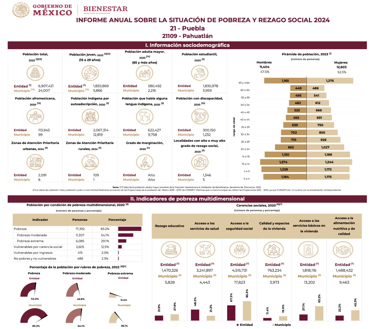 Según cifras de la Secretaría del Bienestar actualizadas al año 2023, el municipio de Pahuatlán cuenta con 24 mil pobladores, de los cuales 12,189 se consideran indígenas, incluyendo a todos los habitantes de Xochimilco.