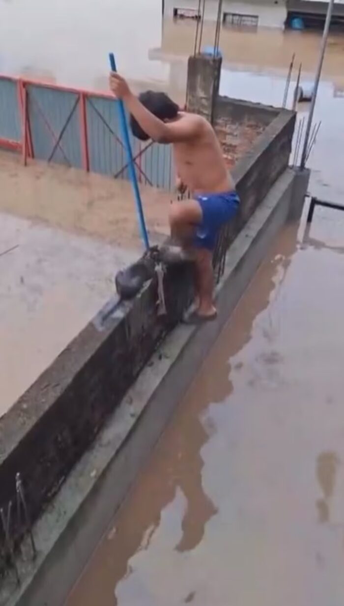 Momento exacto en que niño rescata a gatito durante inundaciones en Veracruz