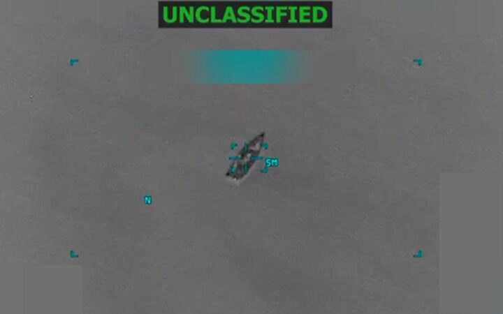 Un video de unos 30 segundos, que Trump publicó, parecía mostrar una embarcación inmóvil en el agua que recibía el impacto de un proyectil antes de explotar.