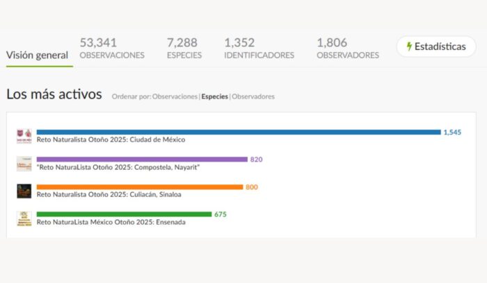 El Reto Naturalista México, realizado del 3 al 6 de octubre y organizado por iNaturalistMX, contó con la participación de 52 ciudades del país y la presencia especial de La Habana, Cuba, como ciudad invitada.