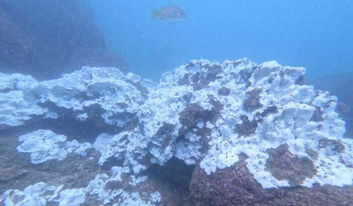 Bucear en ese territorio era “como sumergirse en un caldo”, recuerda García Vázquez, coordinadora de conservación de corales de COSTASALVAJE, organización internacional y sin fines de lucro dedicada a la conservación de ecosistemas marinos. “En años previos, la temperatura se había mantenido entre 28 a 31 grados. Pero cuando fue lo de El Niño, registramos entre 33 y 34 grados, pero a una profundidad tremenda, a más de 20 metros. De verdad, era como bucear en un caldo… era un sauna total”, describe.