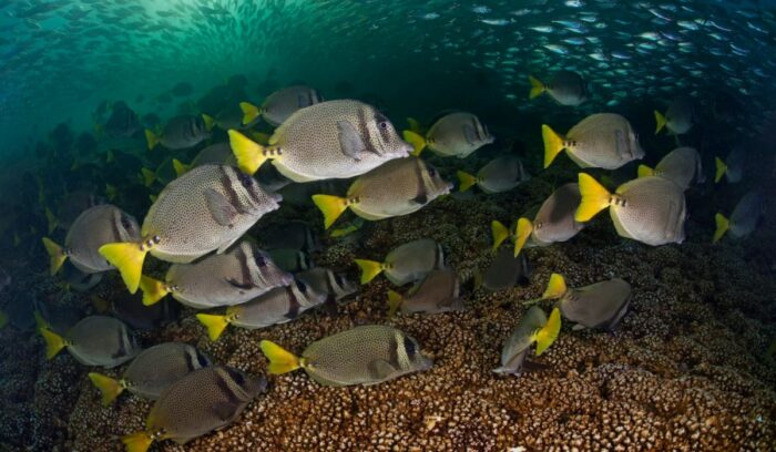 Como resultado, se observó un crecimiento explosivo de erizos —como el erizo diadema (Diadema mexicanum) y el erizo punta de lápiz (Eucidaris thouarsii)—, que se vieron directamente beneficiados por esta nueva fuente de alimento, así como un incremento en la abundancia de peces con hábitos netamente herbívoros, como cardúmenes de peces cirujanos de la especie Prionurus laticlavius, lo que sugiere que la ictiofauna del parque fue resiliente y contribuyó a mitigar el impacto del blanqueamiento.