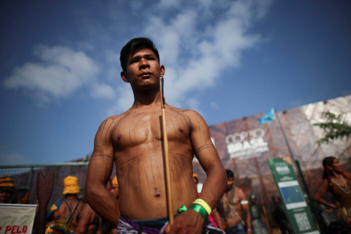 Casi 90 miembros de la etnia Munduruku, ataviados con penachos de plumas y collares de semillas, crearon sobre las 6:00 de la mañana un cordón con bastones rituales de madera para impedir que los participantes entraran a la conocida como Zona Azul, el área restringida bajo administración de la ONU donde se realizan las negociaciones.