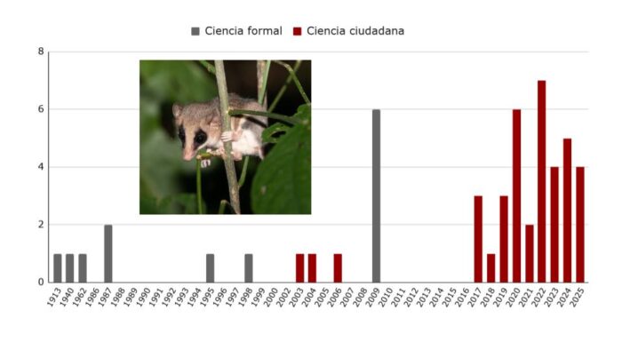 El estudio que publicó la presencia del tlacuache ratón yucateco en Quintana Roo utilizó cinco registros: cuatro provenientes de colecciones científicas no digitalizadas y uno obtenido a través de iNaturalist, una plataforma de ciencia ciudadana donde cualquier persona puede subir fotografías de organismos silvestres.