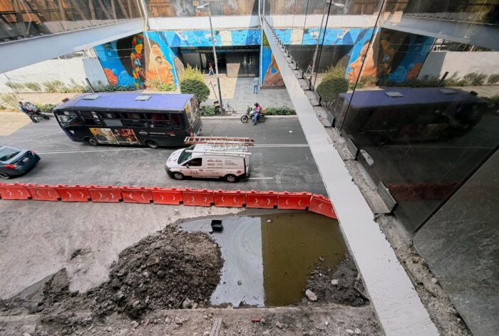 “Las 24 horas ruido, las 24 horas polvo, las 24 horas agua y tráfico”, resume Marco, quien vive y trabaja frente a las obras, a la vez que denuncia que las perforaciones por las obras han generado encharcamientos constantes, señala.
