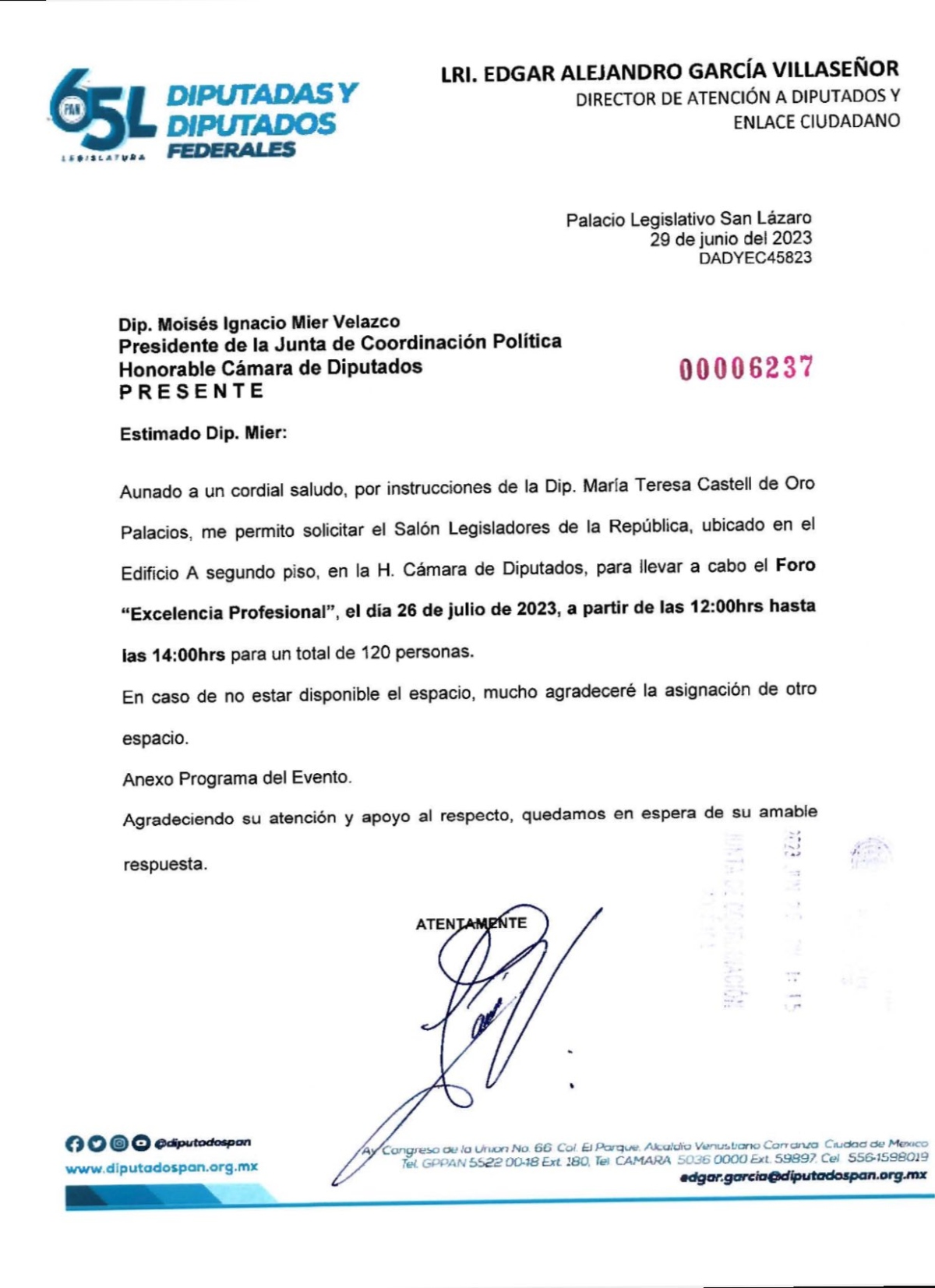 El galardón le fue otorgado por la revista “The One México” que dirige la empresaria Claudia Montelongo, quien a su vez tramitó los permisos para el uso de las instalaciones legislativas de San Lázaro con la entonces diputada del PAN, María Teresa Castell de Oro Palacios, provocando una oleada de acusaciones mutuas entre Acción Nacional y Morena de estar vinculados con el crimen organizado.