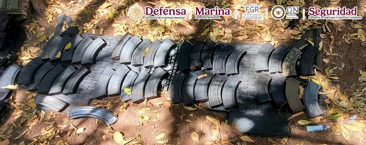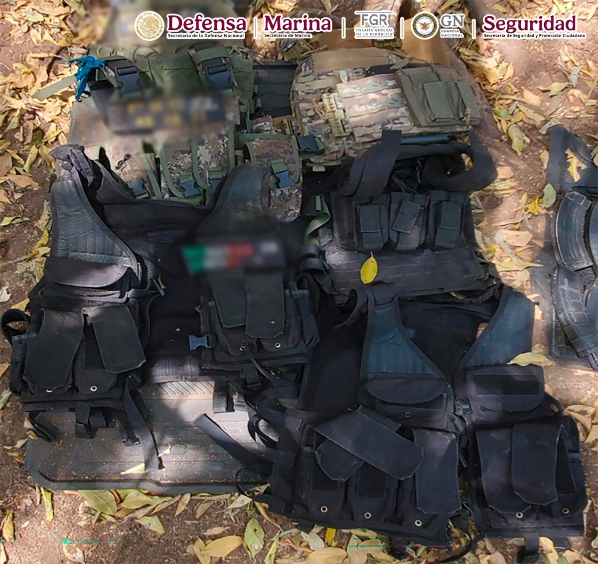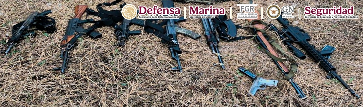 En el hombre que contó con la participación de la Secretaría de la Defensa Nacional (Defensa), la Fiscalía General de la República (FGR) y Guardia Nacional (GN) se logró el aseguramiento de siete armas largas, un arma corta, cargadores, una cubeta cartuchos para diversas armas, seis chalecos balísticos, equipo táctico y un vehículo tipo Jeep color azul.